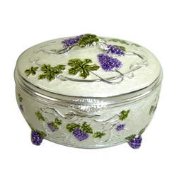Elegante scatola per ciondolo con cerniera in metallo argentato smaltato a forma di uva