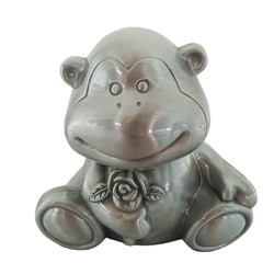 Orso in lega di zinco con salvadanaio musicale in argento placcato