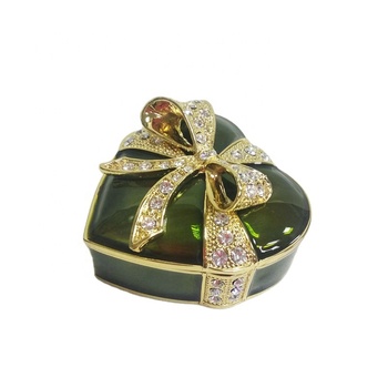 Piccolo cuore-a forma di scatola di gioielli con diamanti in oro placcato con resina epossidica verde