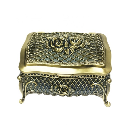 Portagioie con cerniera rettangolare in metallo scatola in lega di zinco con motivo a rose in oro placcato